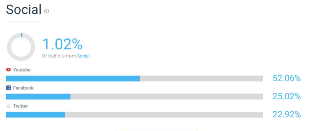 Going deeper into social traffic, it was shown that of the 1.02%, 52.06% of the traffic was coming from their YouTube channel and 25.02% from their Facebook account.